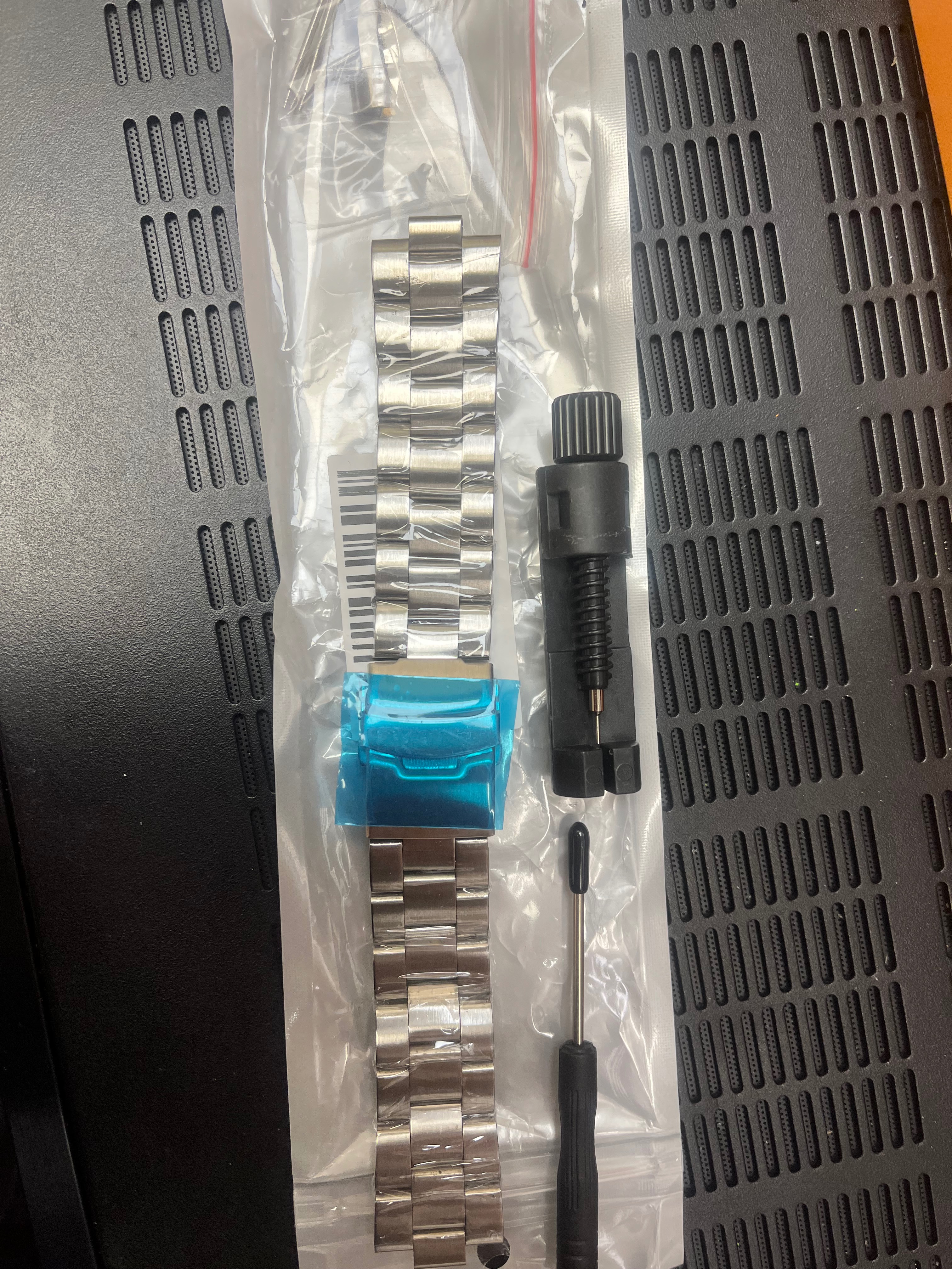 Чисто нова верижка seiko неръждаема стомана.Висок клас верижка пълен комплект с инструменти за поставяне и резервни звена и патенти.Верижката е чисто нова и е с фабричното си фолио и на верижката и на закопчалката.Никога не е монтирана.Става за много различни модели на Seiko-не е за определен модел!
